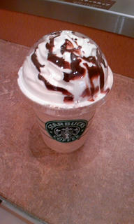 しかもカスタムし過ぎて原型止めてないおwww元はキャラメルフラペチーノ。キャラメルシロップをホワイトモカシロップに変更、キャラメルソースをチョコレートソースに変更、ホイップ多めの「ホワイトモカフラペチーノ」。